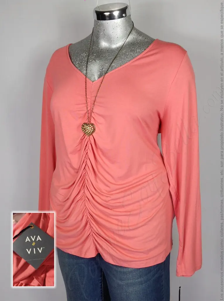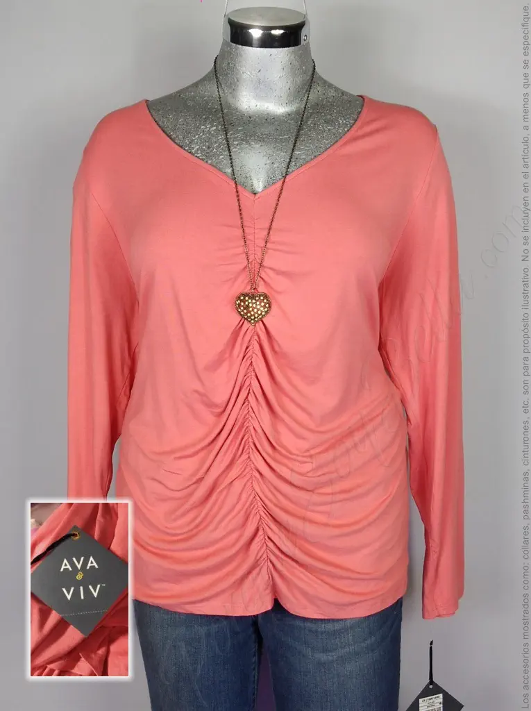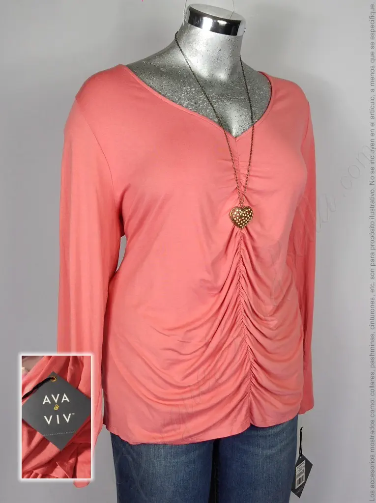 La blusa Ava & Viv en coral es la prenda perfecta para añadir un toque de frescura y sofisticación a tu look. Su cuello en V con plisado al frente le da un detalle elegante y femenino, mientras que las mangas largas ofrecen un ajuste cómodo y estilizado. Confeccionada en rayón, es ligera y suave al tacto, perfecta para todo el día. Su corte básico es ideal para combinar con jeans o faldas, creando un estilo relajado y chic. ¡Hazla tuya y resalta con un color que ilumina tu estilo!