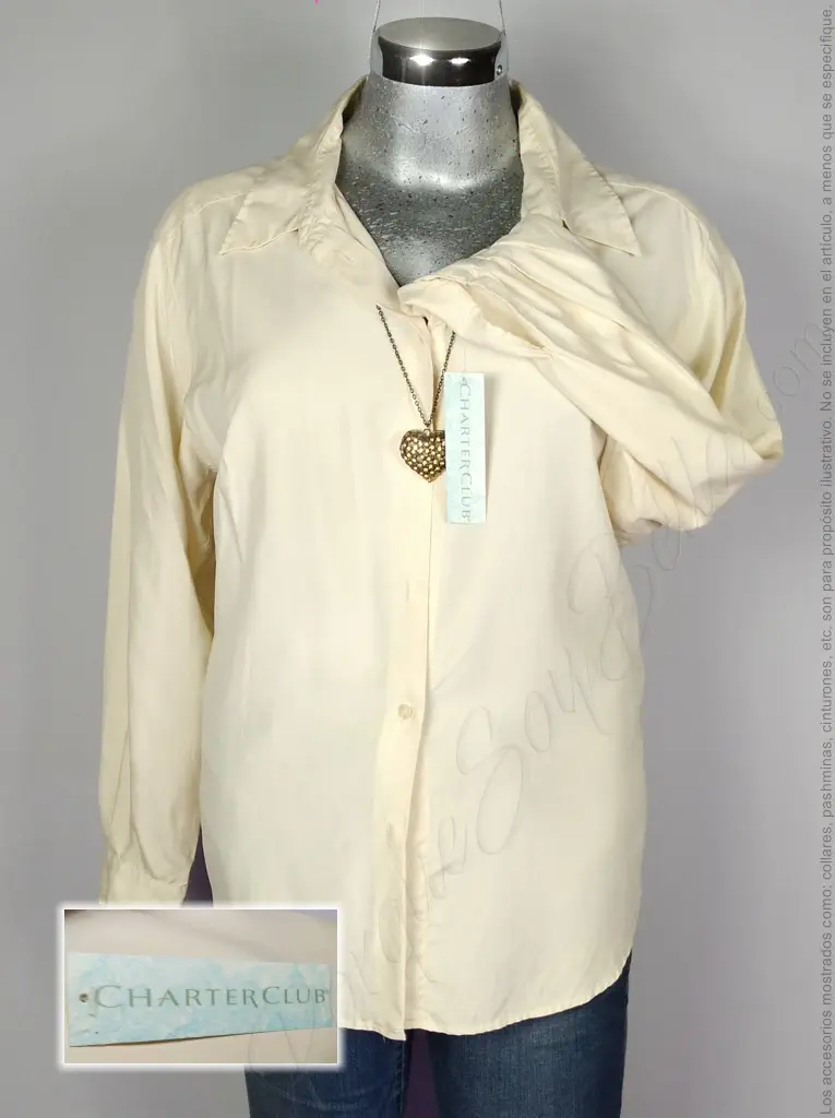 Blusa Clásica de Seda Crema: Charter Club con Botones al Frente