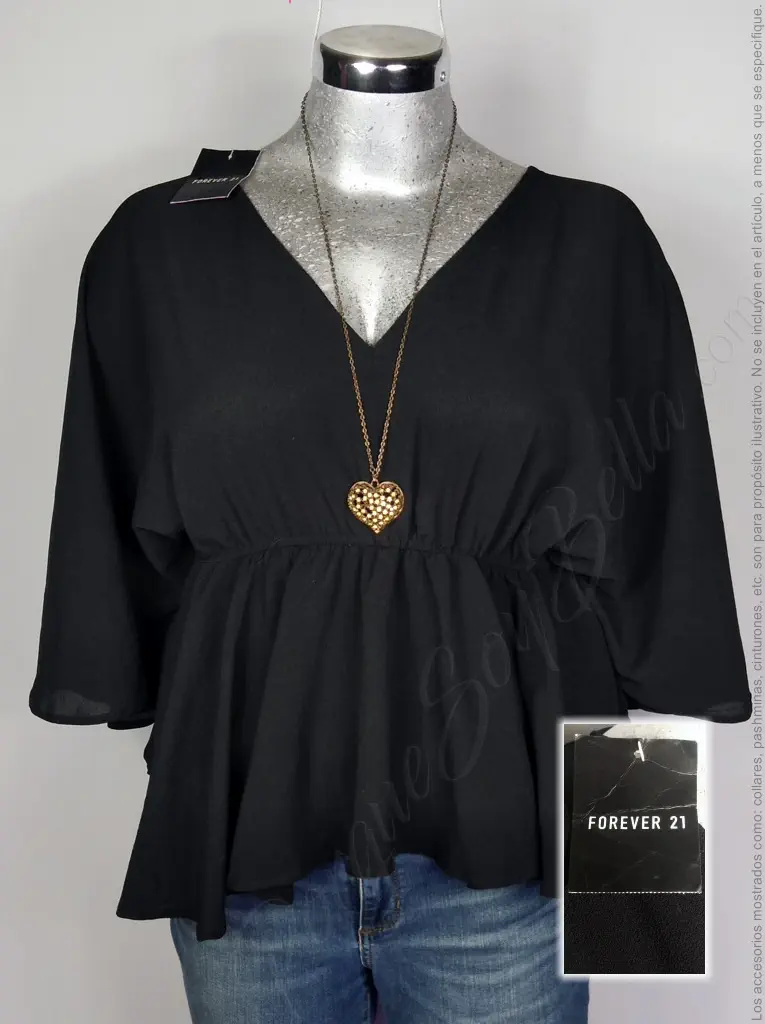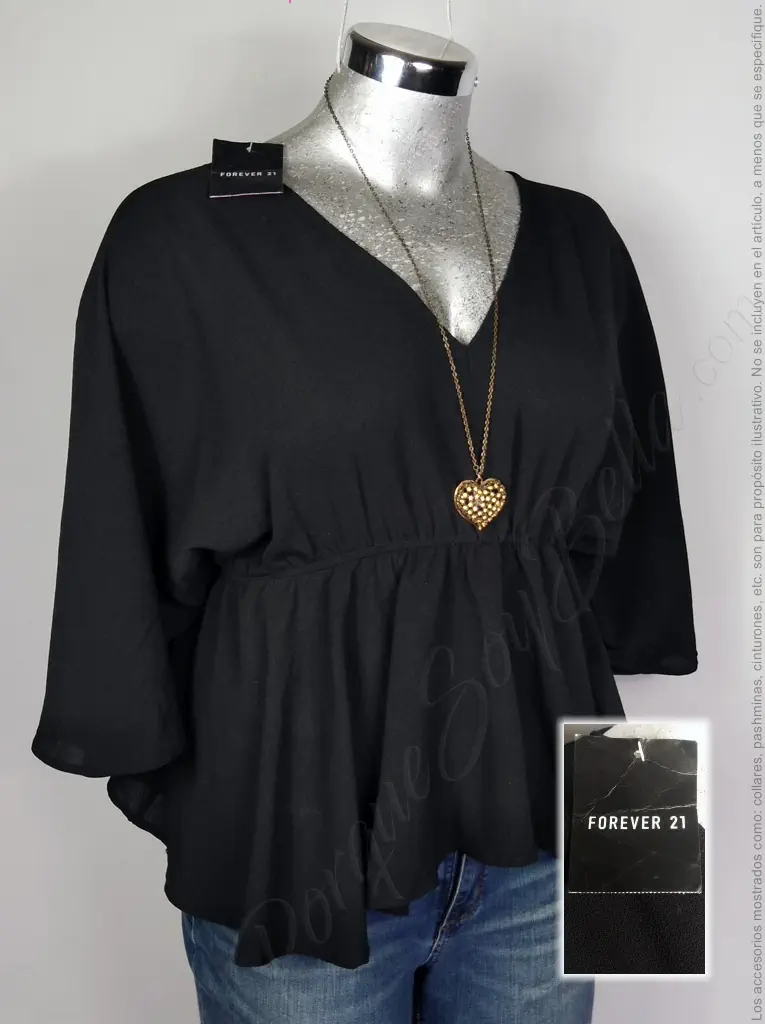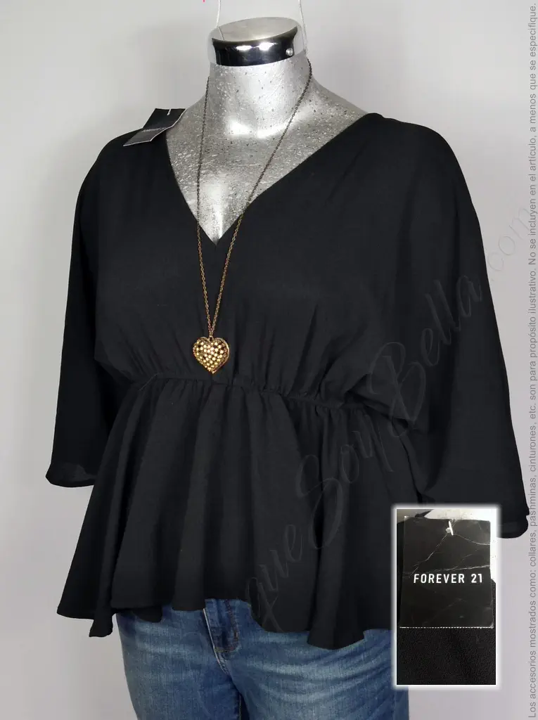 Blusa Forever 21+ Negra Con Cuello En V – Estilo Peplum