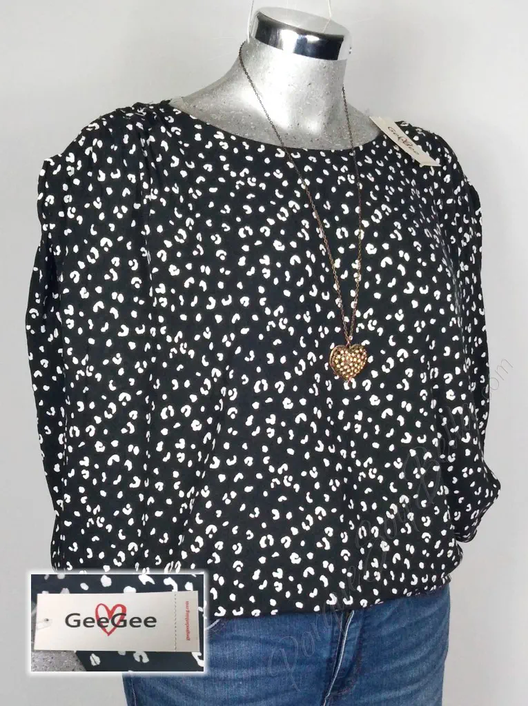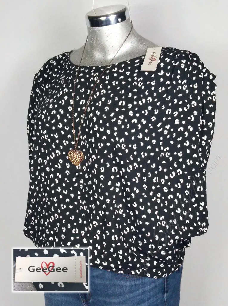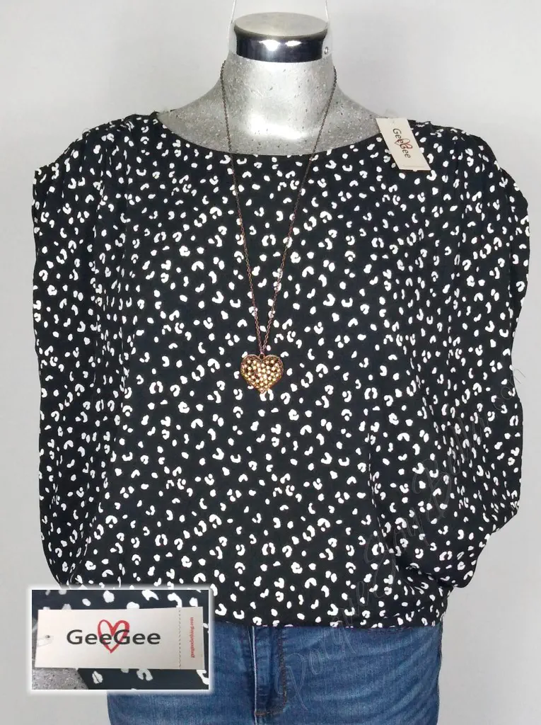 Sofisticación Animal en Negro: Blusa GeeGees con Estampado en Animal Print y Manga Corta Cuadrada para un Look Aglobado Único