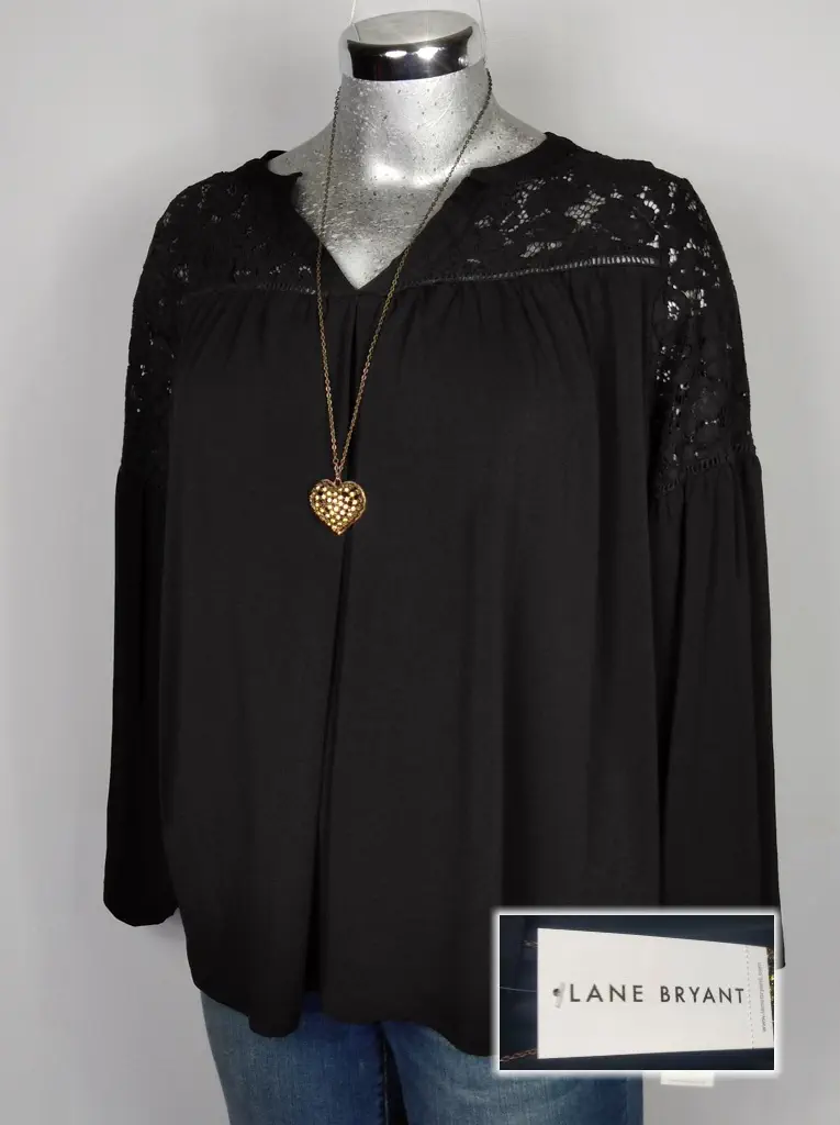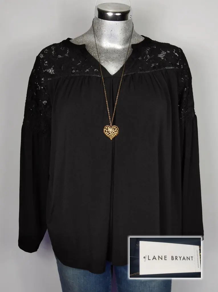 Blusa Lane Bryant Negra con Encaje en Cuello y Hombros
