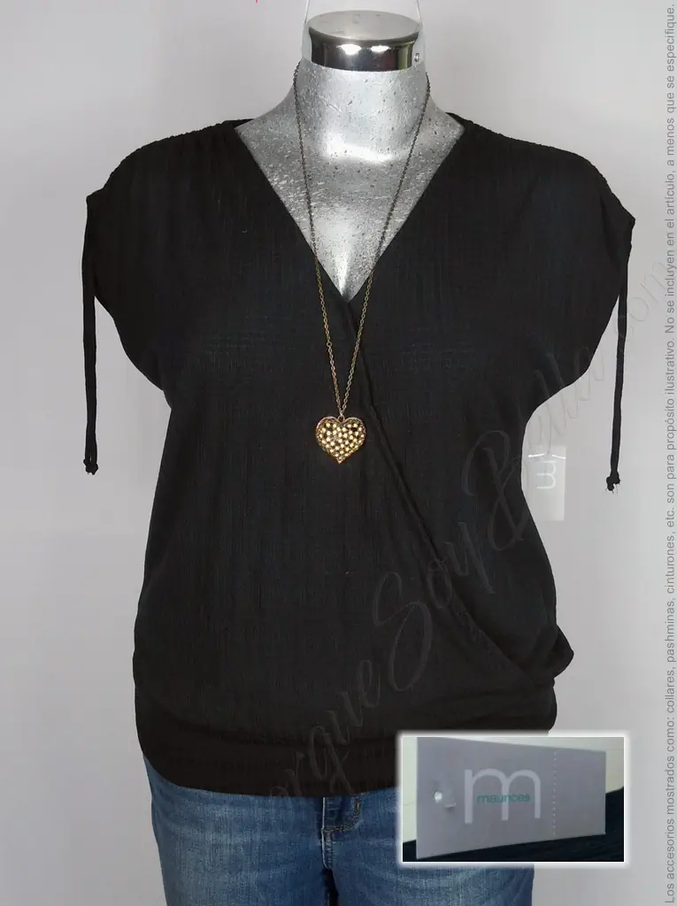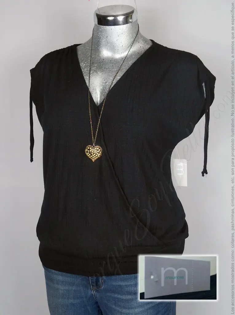 Elegancia Atemporal: Blusa Negra de Encaje Bordado con Cuello Alto de Maurices
