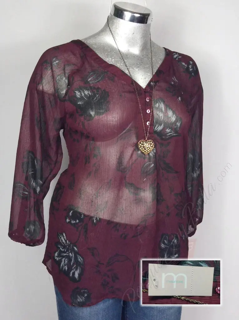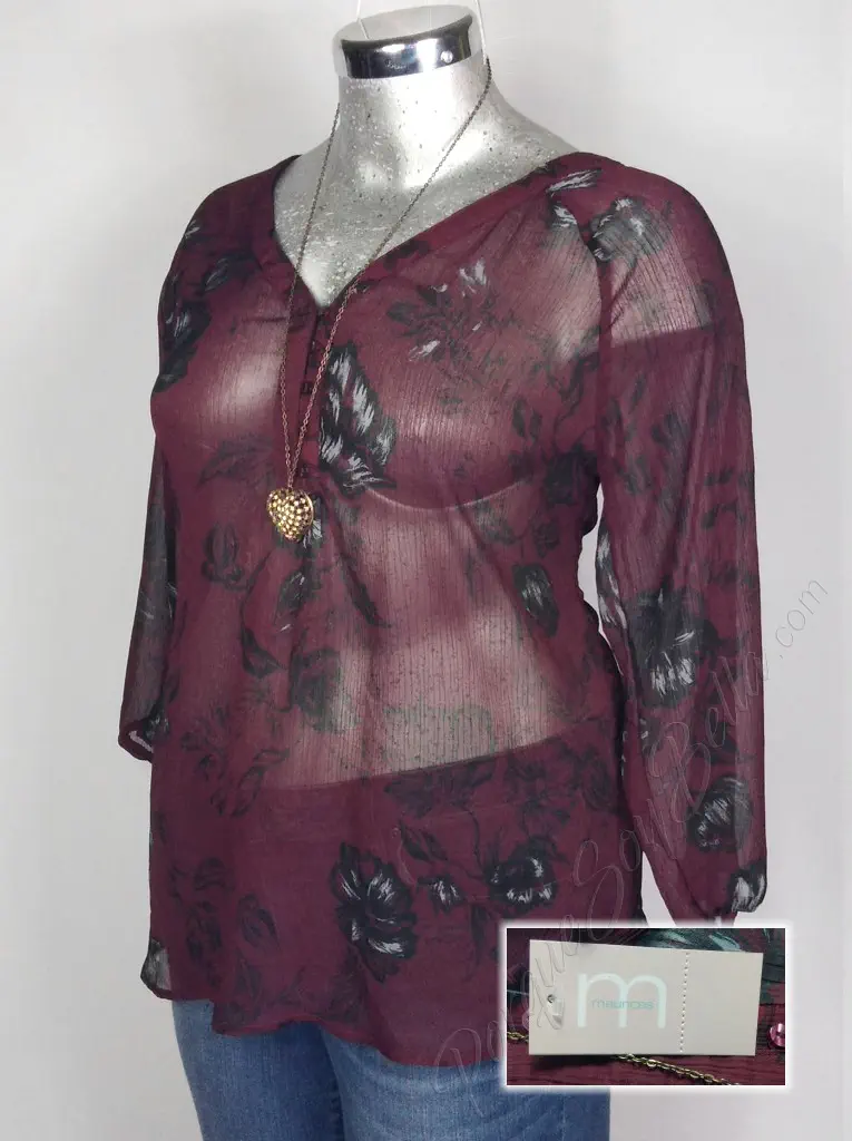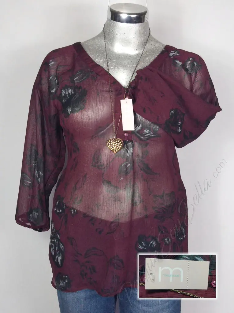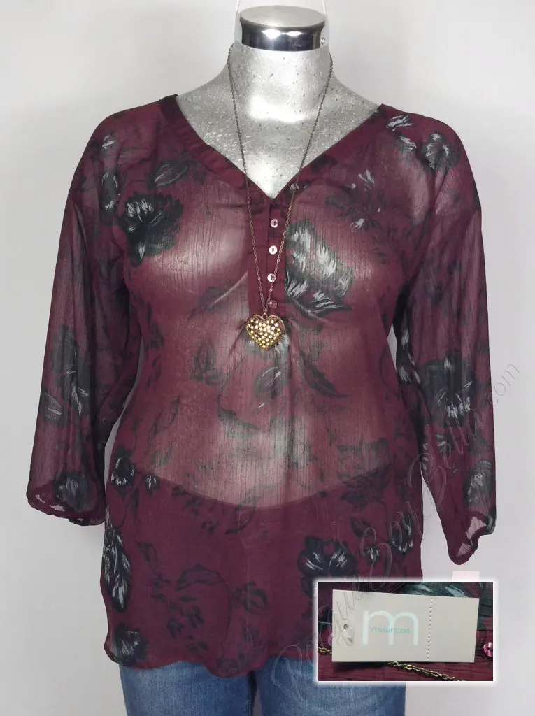 La blusa Maurices en un elegante color vino presenta un encantador estampado en flores negras que le da un toque de estilo único. Con un cuello en V que resalta la figura, esta blusa ofrece un diseño favorecedor y moderno. La manga 3/4 con resorte añade un toque de comodidad y versatilidad, permitiendo ajustar la longitud de la manga según se desee. Fabricada en poliéster, esta blusa ofrece una sensación suave y ligera al usarla. Con un corte blusón, esta prenda es perfecta para lucir elegante y casual al mismo tiempo. Disponible en talla XXL (38/40), esta blusa es ideal para añadir un toque de estilo a tu guardarropa.