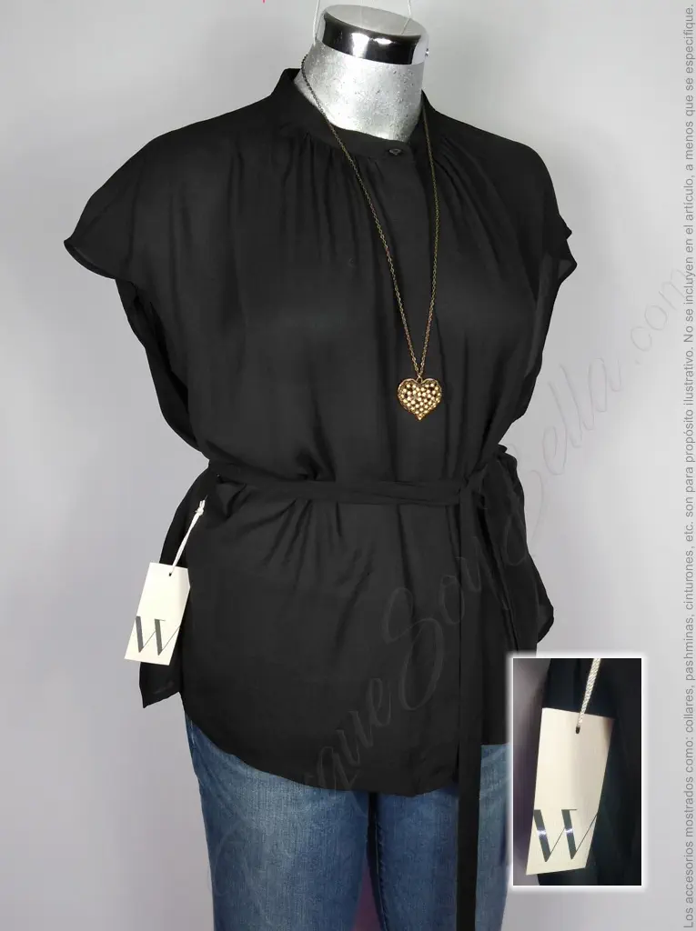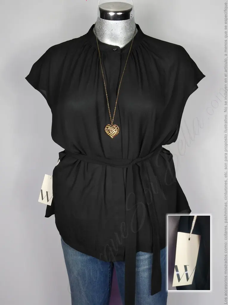 La blusa Worthington en color negro, con un sofisticado cuello en V y botones al frente ocultos, es una pieza clave para cualquier armario. Su manga corta y la cinta para amarrar en la cintura agregan un toque de estilo, mientras que su corte cuadrado y la suave tela de poliéster aseguran comodidad durante todo el día. Ideal para un look casual o semi-formal.