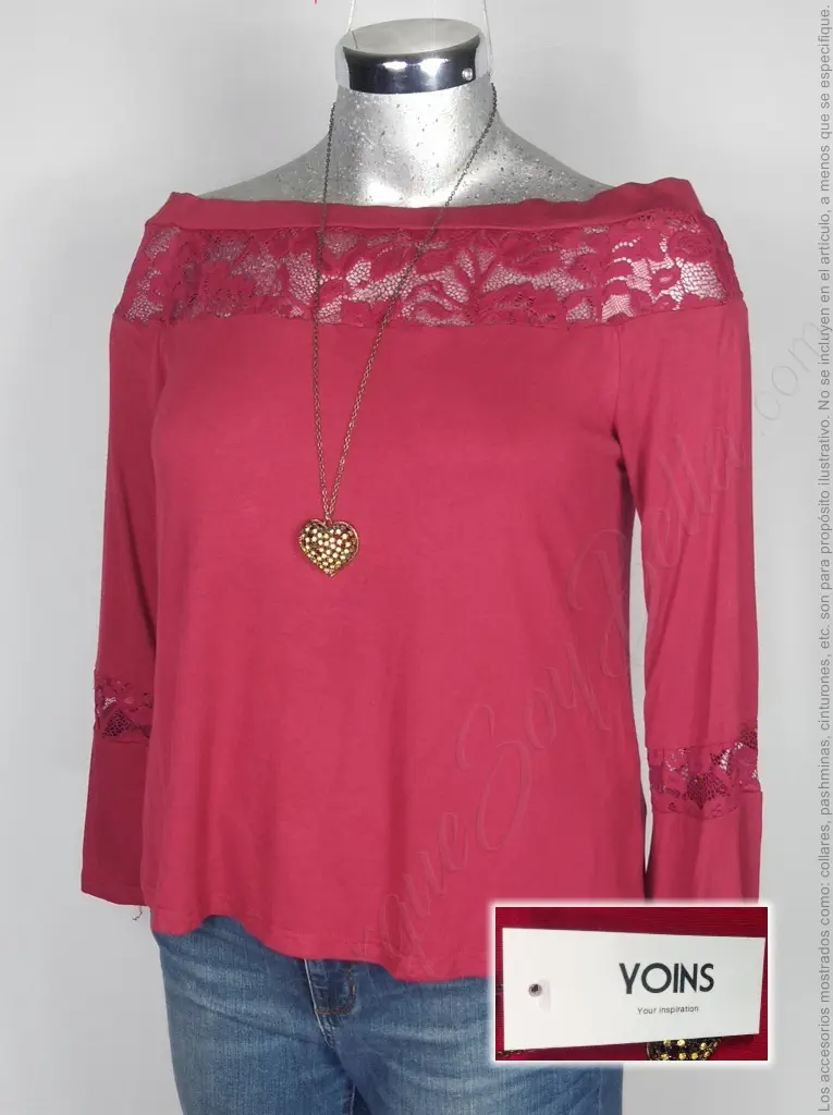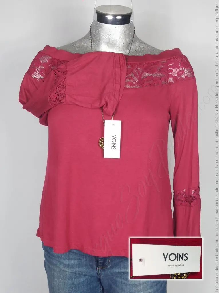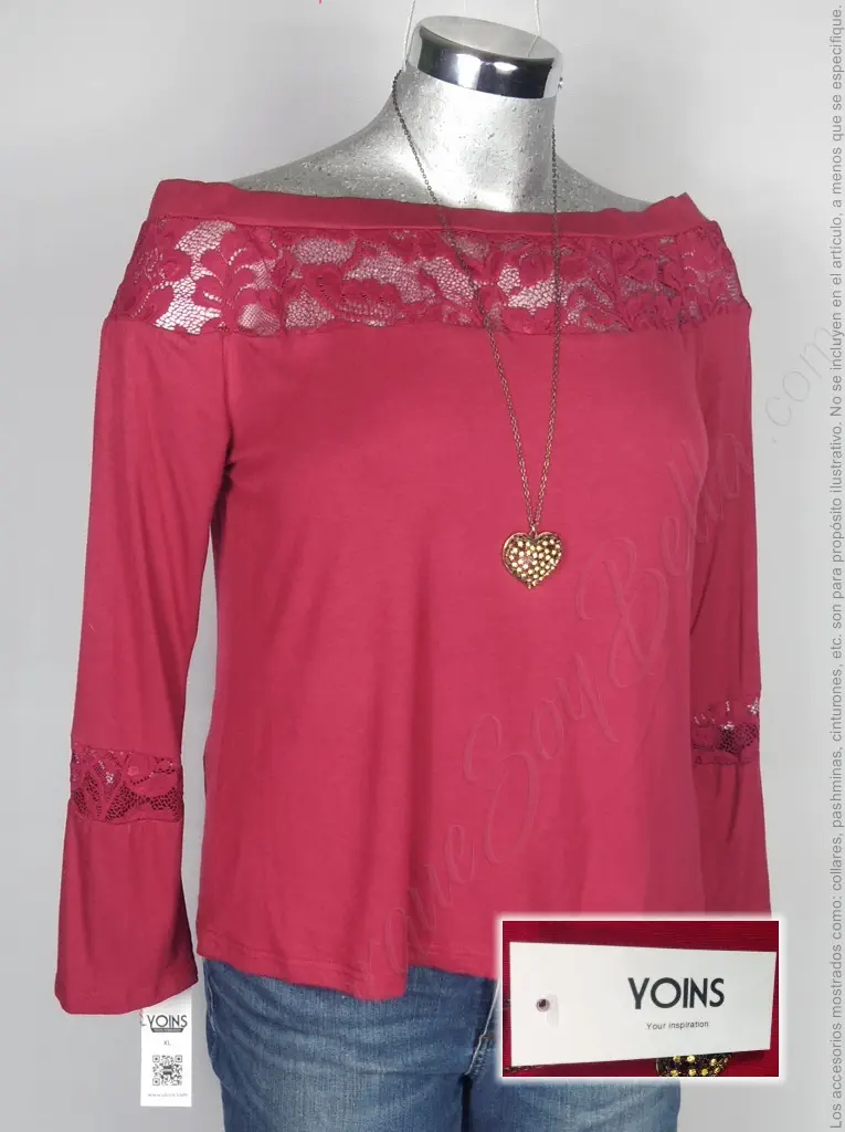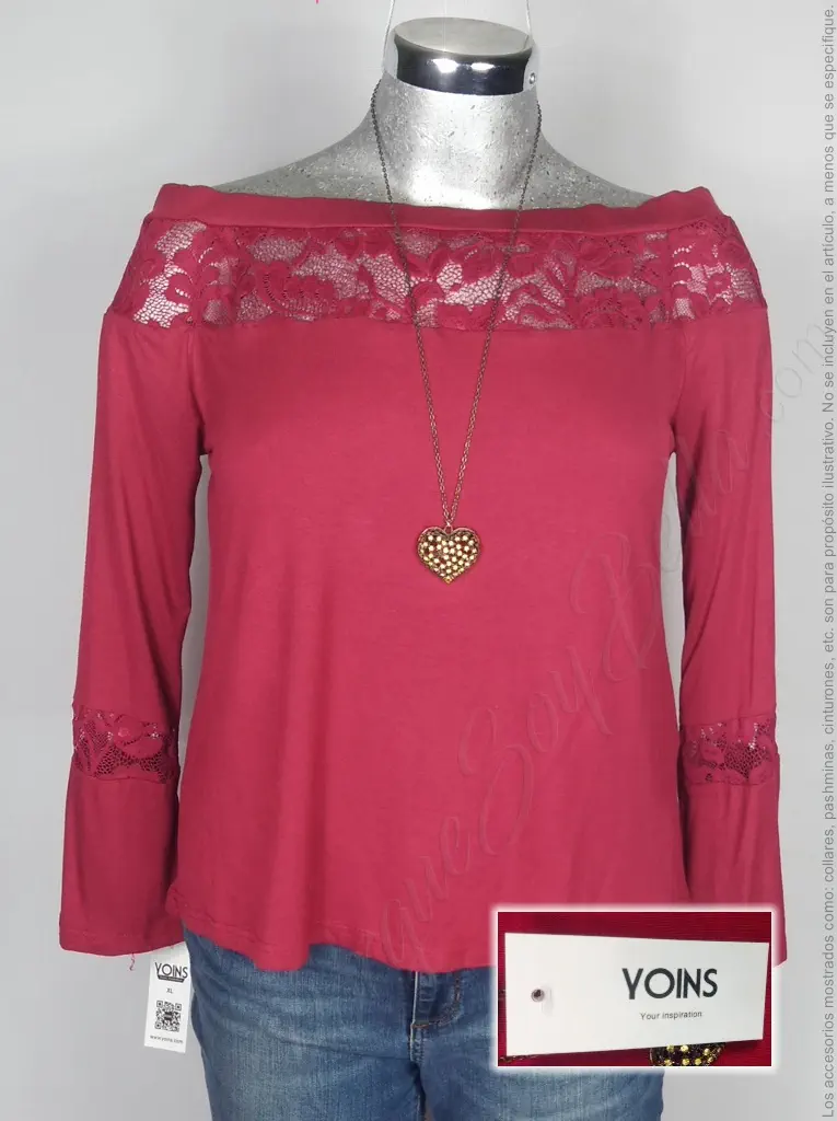 La blusa roja de Yoins Yours Inspirations destaca por su delicado encaje en el pecho, hombros y espalda. Con cuello redondo y mangas largas con encaje, esta prenda ofrece un estilo romántico y elegante. Hecha de rayón y con corte off-shoulder, es ideal para un look femenino y sofisticado.