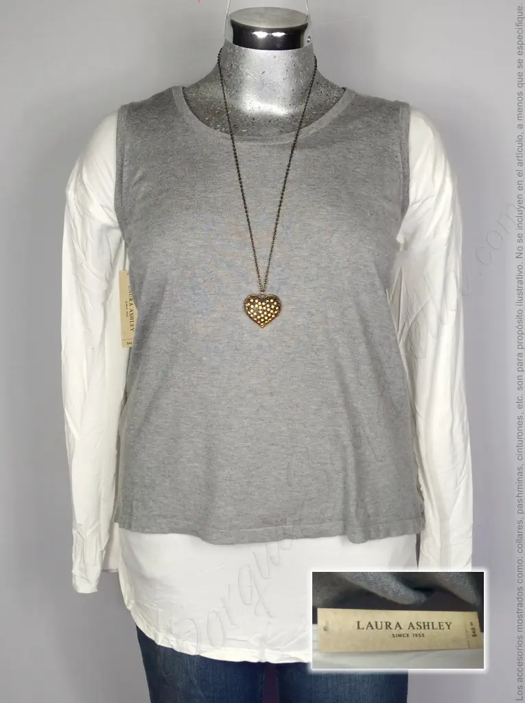 Este chaleco Laura Ashley en color gris es una opción perfecta para un estilo casual y elegante. Su cuello redondo y la tela de punto lo hacen cómodo y fácil de llevar. Con una mezcla de rayón y nylon, este chaleco de corte básico es ideal para capas en cualquier temporada. Disponible en talla 2X (38/40), es una prenda versátil que puedes combinar con diferentes outfits para un toque de sofisticación.